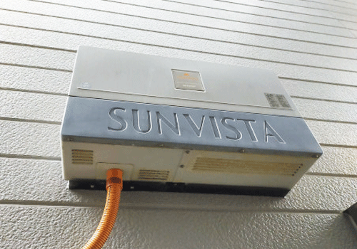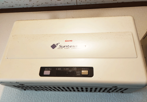 20年以上経過されたSANYOのパワーコンディショナーの点検させていただきました。FIT終了された2020年頃から動いていないとのことです。太陽光パネルは当時世界最高効率といわれていたHITです。接続箱にはパネルからの直流電流は正常にきております。やはりパワーコンディショナーは15年経過頃から取替の必要がでてきます。 ハイブリッドパワコンの蓄電システムの説明をさせて頂きました。HITの発電が復活してエネルギーを自家消費していただきたいです。T様、本日はありがとうございました。